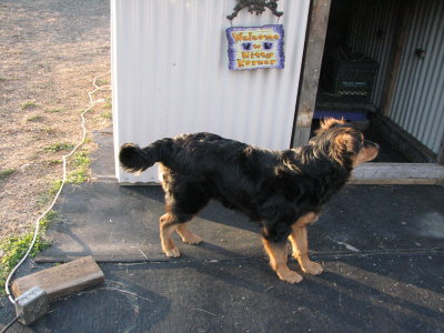 Harley helping with new cat pen.
